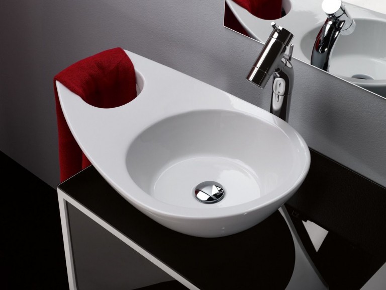 Lo spazio spesso è limitato e capita sovente di avere bagni lunghi e stretti. E il solito portasalviette è d’impiccio e dotarsi di trapano e tasselli può causare liti in famiglia e qualche piastrella rotta… Il problema è risolto con Join, il lavello da appoggio che incorpora un utile e simpatico porta asciugamani. Posizionabile a destra o sinistra, è disponibile in ceramica bianca o nera.