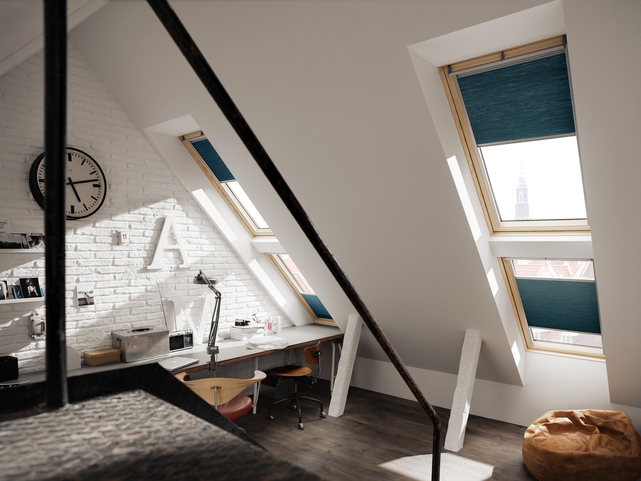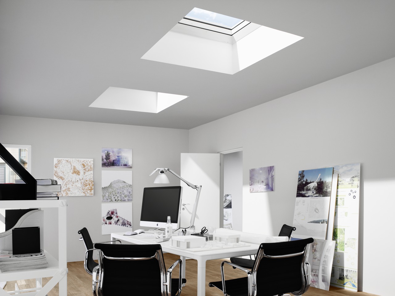 Le finestra a cupolino sono una soluzione per gli uffici a tetto piano che non vengono illuminati a sufficienza dalle finestre verticali. In questo modo la scrivania è illuminata perfettamente dall’alto e non ha bisogno di luce artificiale fino alla sera.