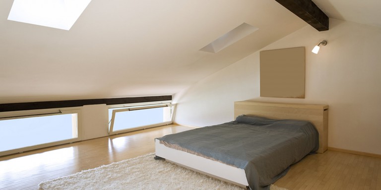 Una delle soluzione per la camera da letto in mansarda, oltre ai mobili e agli armadi, è usare dei letti bassi, in modo da sfruttare le pareti con l’altezza minore per posizionare la testiera e i comodini.