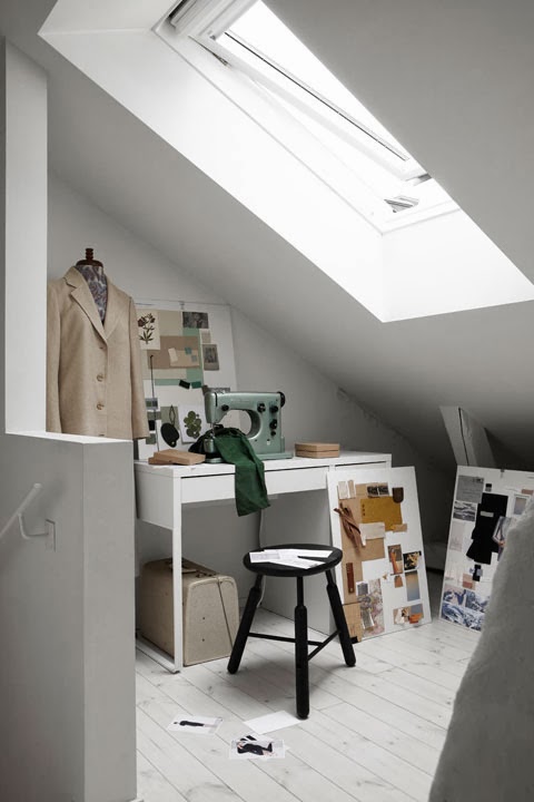 Posizionare il piano di lavoro sotto a una finestra per tetti permette di sfruttare la luce per tutto il giorno.