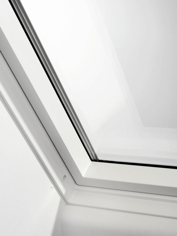 Le finestre per tetti con finitura in poliuretano bianco non richiedono manutenzione e sono realizzate con un’anima in legno termotrattato rivestito da uno stampo di poliuretano bianco, impermeabile e senza giunture.