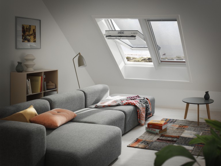 Le tende parasole VELUX garantiscono il massimo del comfort: anche quando il telo è abbassato la vista verso l’esterno non è compromessa e l’effetto di luce nella stanza risulta piacevolmente filtrato.