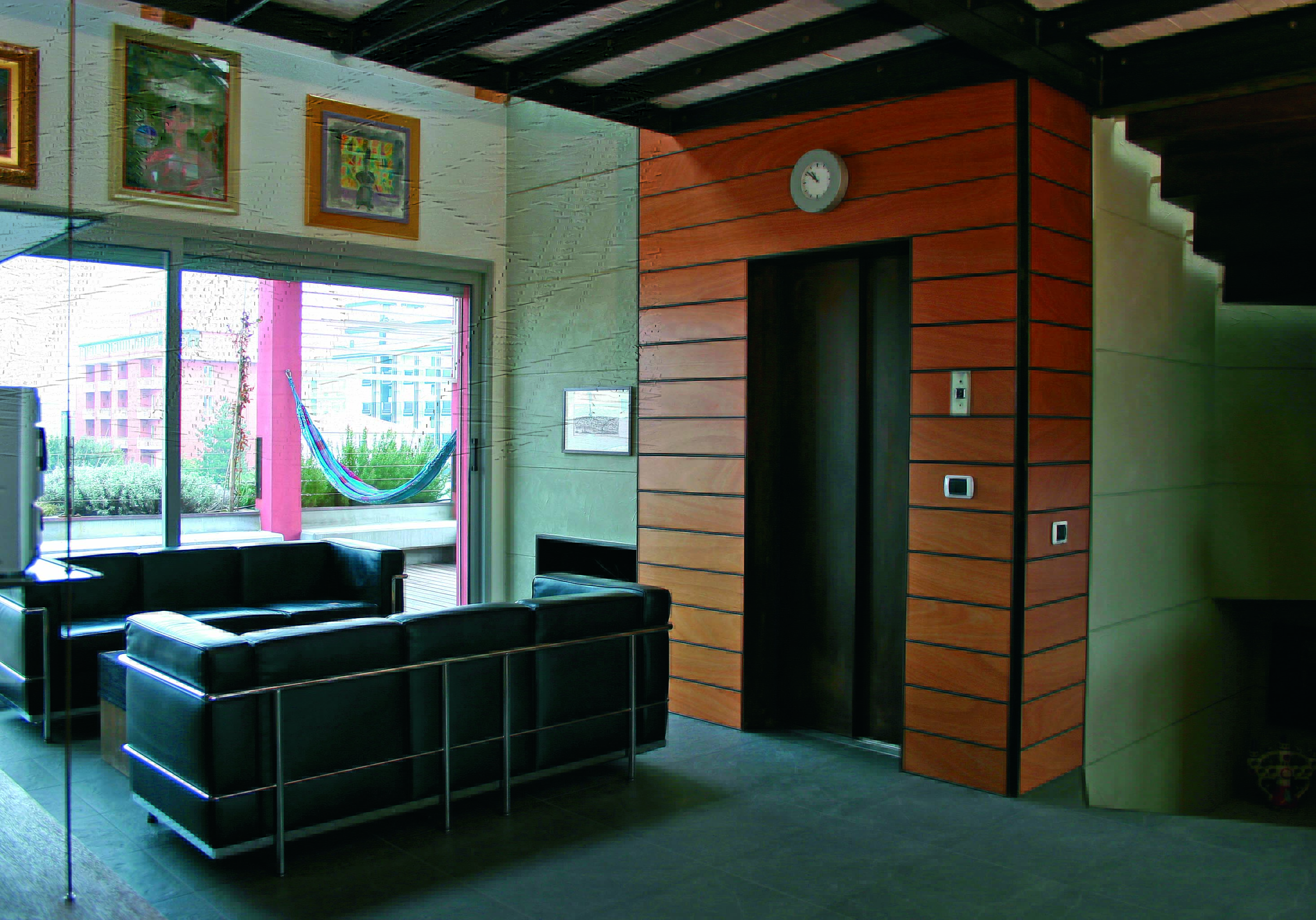 Alcuni dei materiali e dei rivestimenti utilizzati sono solitamente indicati per l’esterno: una scelta precisa che rende, ad esempio, l’ampio ingresso un vero punto d’arrivo, una piazza in cui incontrarsi e sostare in conversazione.