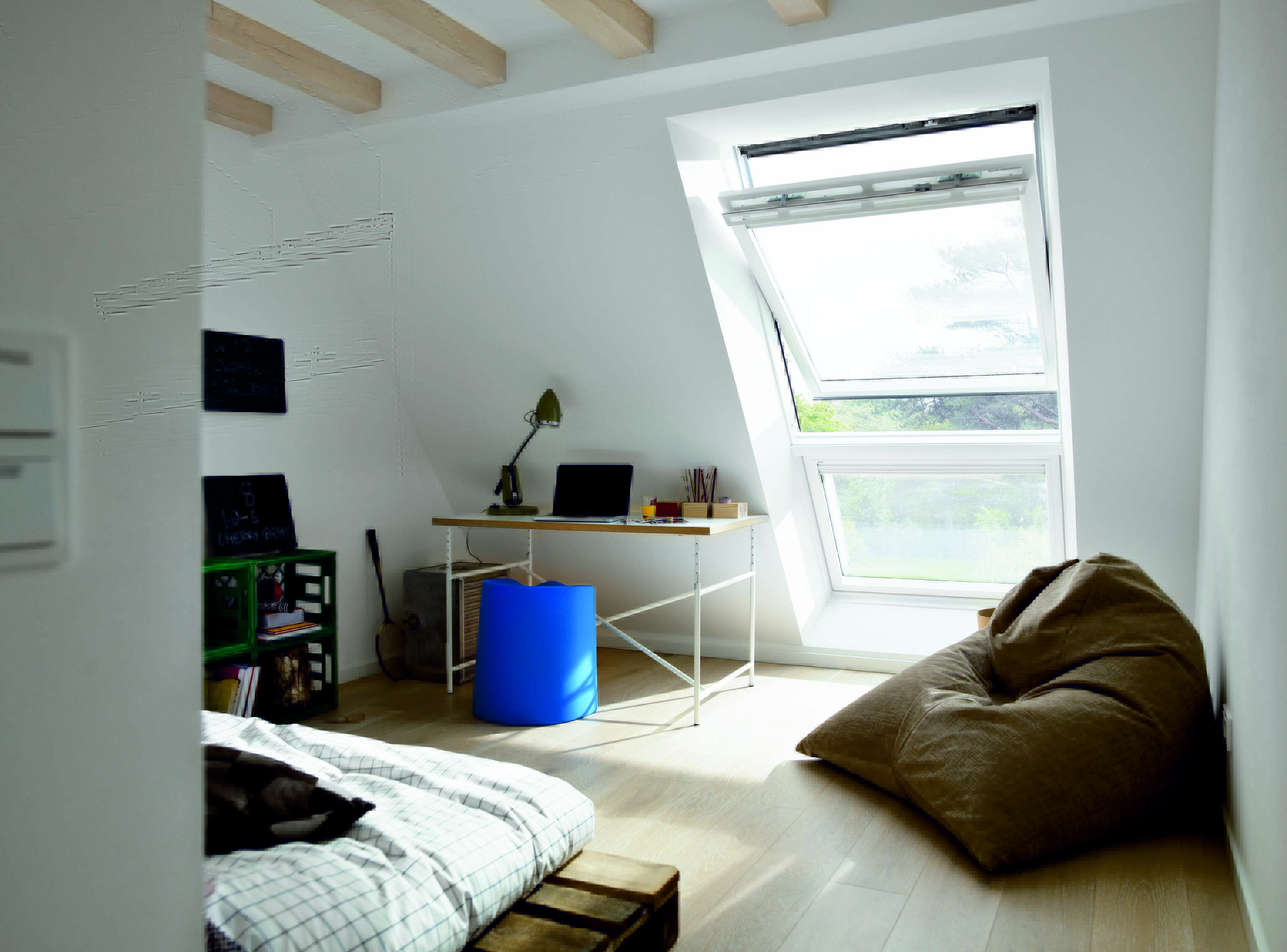 Tutte le stanze sono dotate di finestre in facciata o di finestre per tetti VELUX, posizionate in modo da garantire una distribuzione ottimale della luce naturale. Più luce naturale all’interno di una casa significa minori consumi di energia e ridotto bisogno di luce artificiale. La luce naturale non porta solo significativi risparmi sulla bolletta, ma anche benefici alla salute e al benessere degli abitanti. Per pianificare la distribuzione della luce naturale all’interno di LichAktive Haus e quindi la disposizione delle finestre, un team di esperti ha condotto delle analisi illuminotecniche che hanno permesso di misurare il livello di luce naturale all’interno degli ambienti. Normalmente, se il livello in valore percentuale supera il 4%, si ha un comfort luminoso ottimale. Nel caso di LichtAktiv Haus in alcune stanze si arriva fino al 10%.
