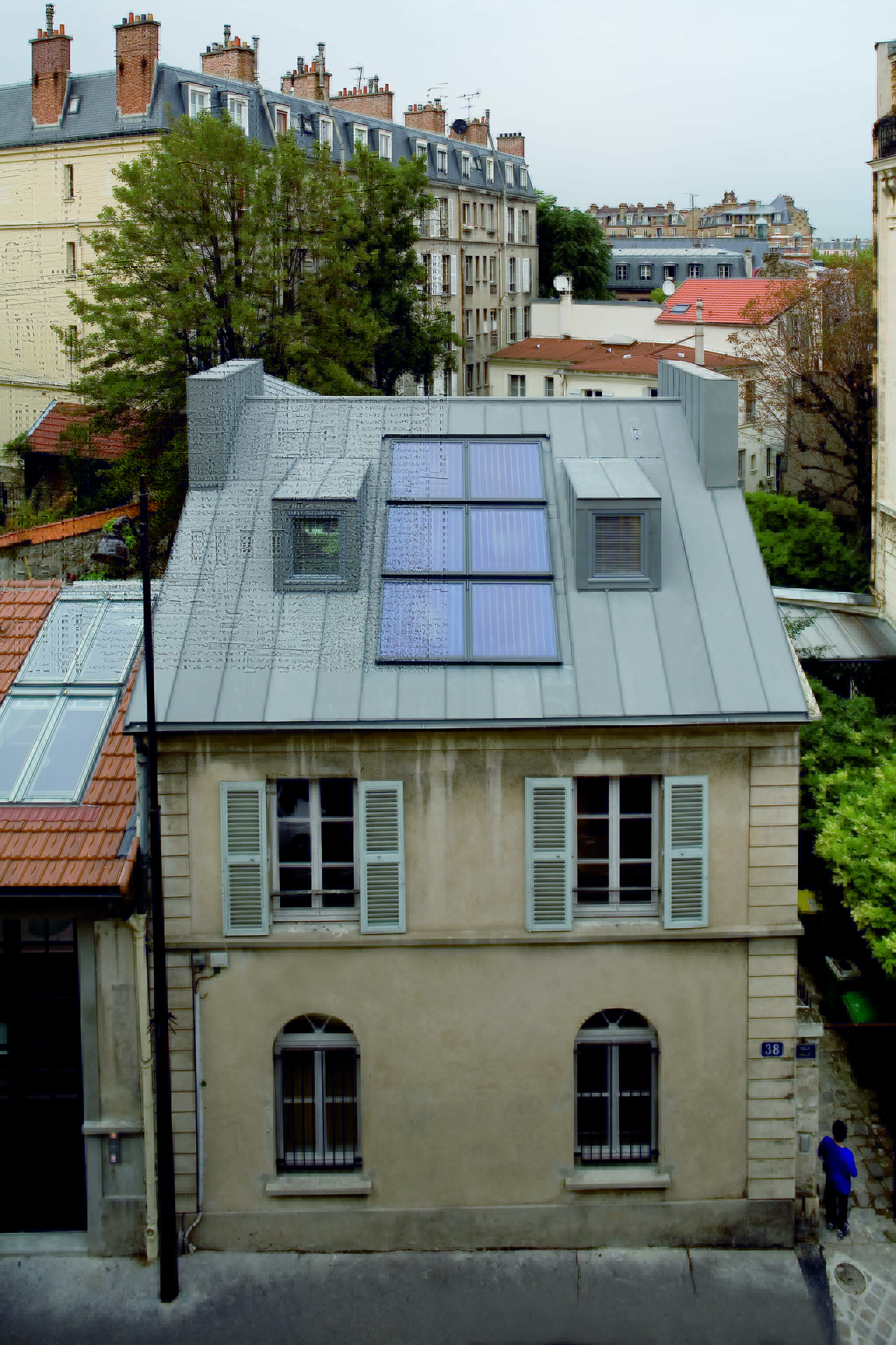 Il progetto di recupero, degli architetti Jacques Moussafir, Eric Wuilmot,  inizia con la ricostruzione del tetto della casa e dell’atelier, sul quale vengono installati 6 pannelli solari termici integrati.