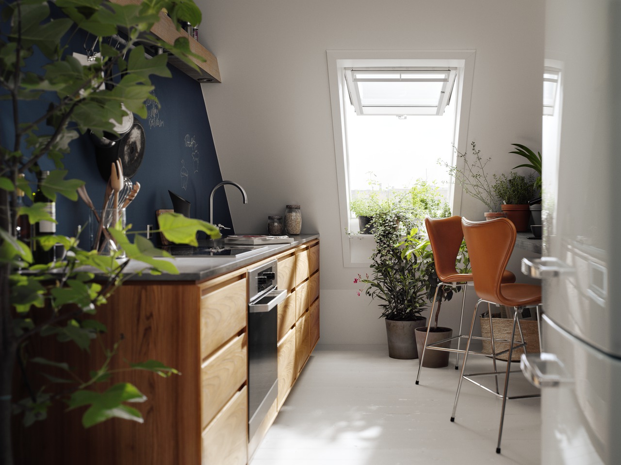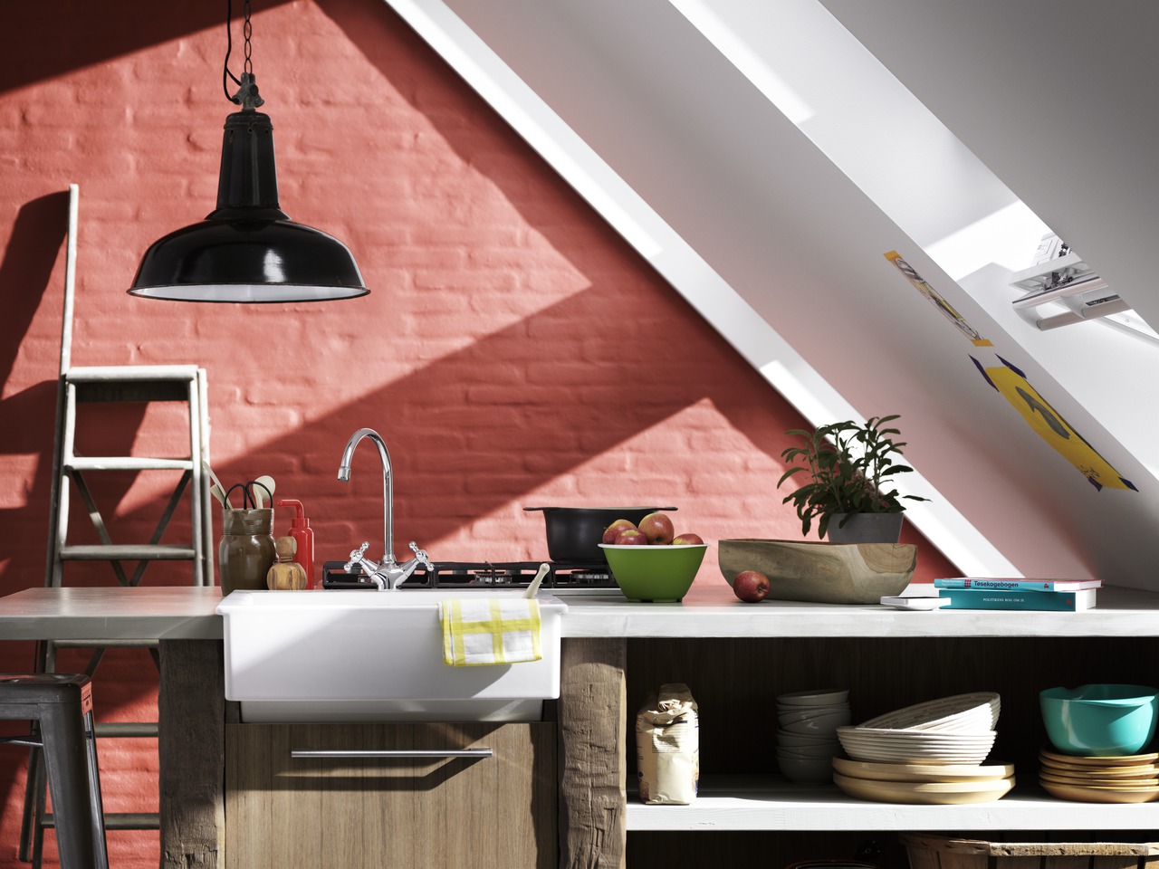 I progetti per una cucina in mansarda possono essere molto interessanti e inoltre la forma del tetto crea un effetto camino e quindi facilita il ricambio dell’aria attraverso le finestre per tetti.
