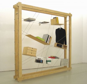 Spankast è una libreria soprendente: la sua rigidità è data dai cavi in tensione in una cornice di legno Il